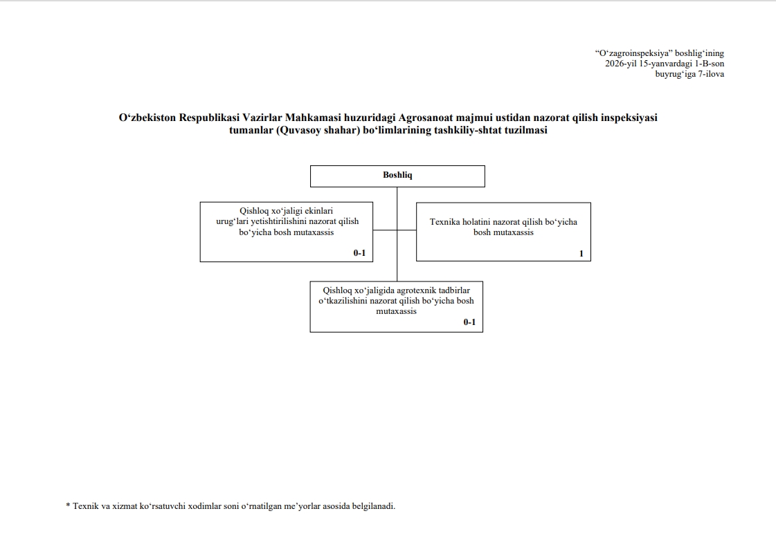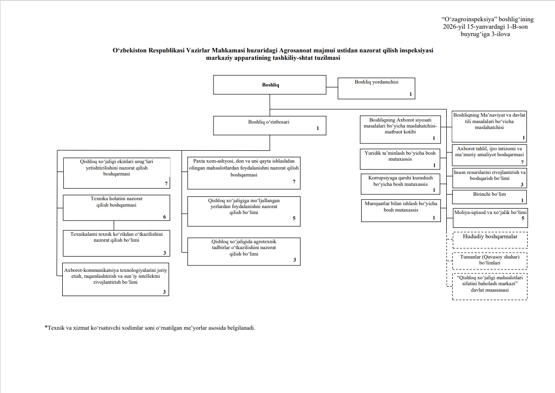 "O‘zagroinspeksiya" qoshidagi“Qishloq xo‘jaligi mahsulotlari sifatini baholash markazi” davlat muassasasi
