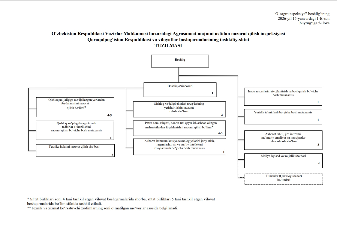 O‘zbekiston Respublikasi Vazirlar Mahkamasi huzuridagi Agrosanoat majmui ustidan nazorat qilish inspeksiyasi
