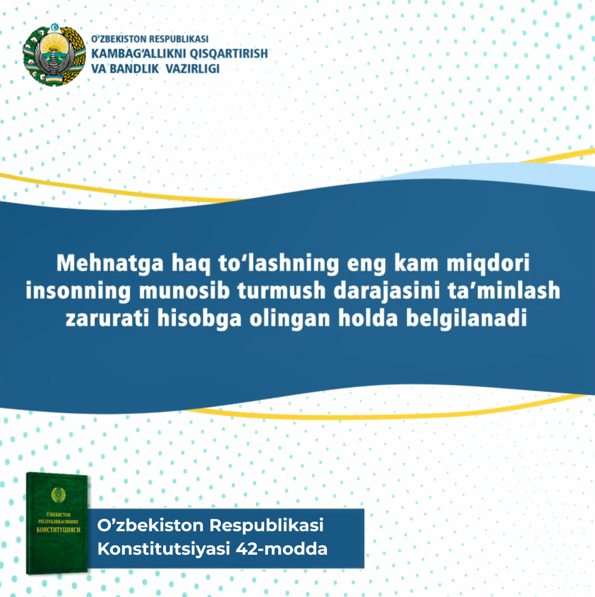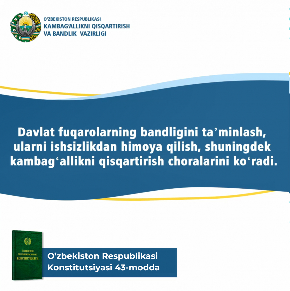 “Konstitutsiya – xalqchil davlat, barqaror taraqqiyot va farovon hayot asosi” shiori ostida o‘tkazilgan bayram tadbirida Kambag’allikni qisqartirish va bandlik vazirligi va uning tuzilmalari vakillari, Oliy Majlis Qonunchilik palatasi deputatlari hamda taniqli ijodkorlar ishtirok etdi.