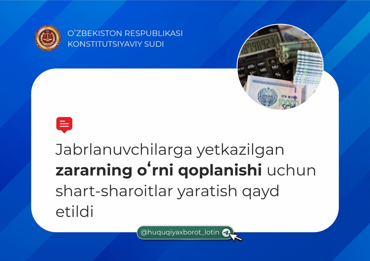 Alohida jinoyatlar, birinchi navbatda firibgarlik bo'yicha jazoni yengilrog'i bilan almashtirishda sudlanuvchi tomonidan jabrlanuvchiga yetkazilgan zararning qoplanilganligini inobatga olish talabini kiritish orqali jabrlanuvchilarga yetkazilgan zararning o'rni qoplanishi uchun shart-sharoitlar yaratish qayd etildi.
