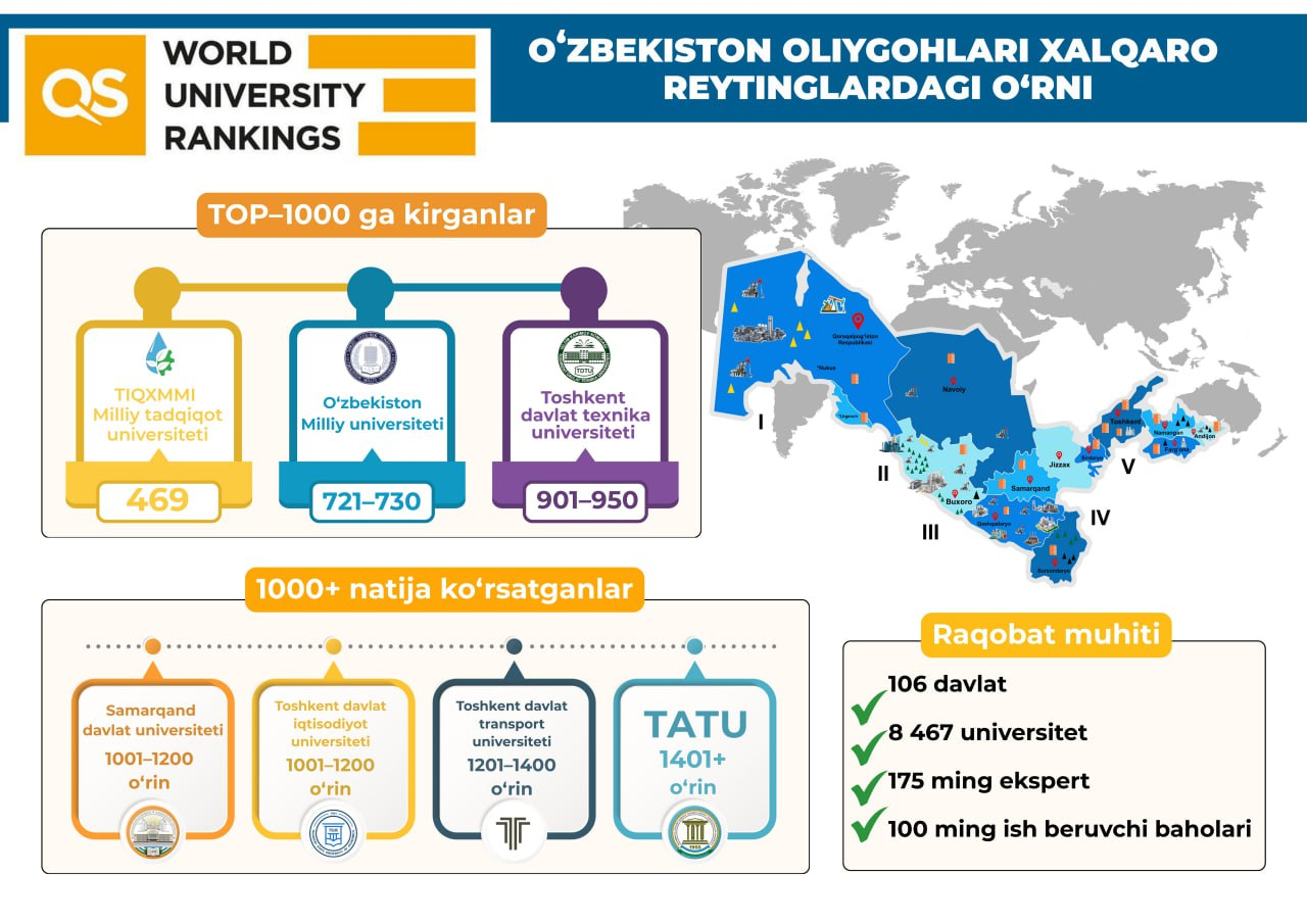 - Oʻzbekiston Respublikasi Prezidentining Ozarbayjon Respublikasiga davlat tashrifi (2025-yil 2-3-iyul) doirasida imzolangan “Oʻzbekiston Respublikasi Hukumati bilan Ozarbayjon Respublikasi Hukumati oʻrtasida ilm-fan, kasbiy va oliy taʼlim sohasida hamkorlik toʻgʻrisidagi Bitim”.