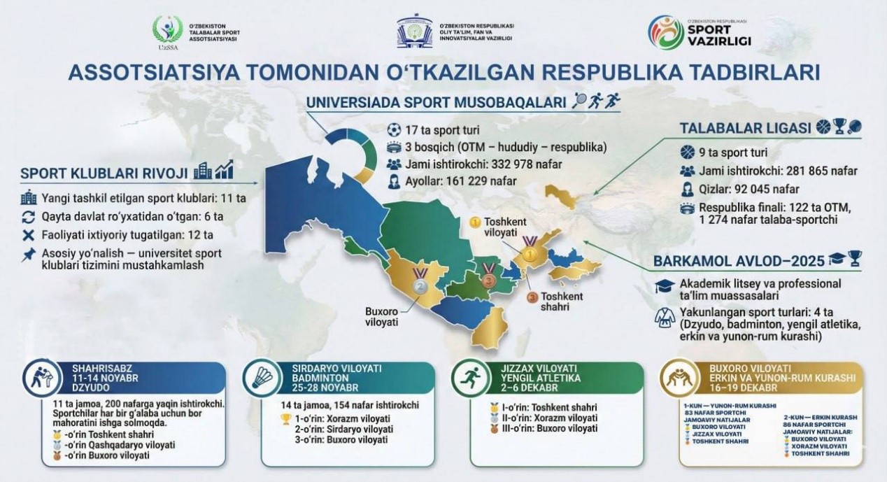 xalqaro fan olimpiadalarda 72 ta (11 ta oltin, 24 ta kumush, 37 ta bronza) medal qoʻlga kiritildi;