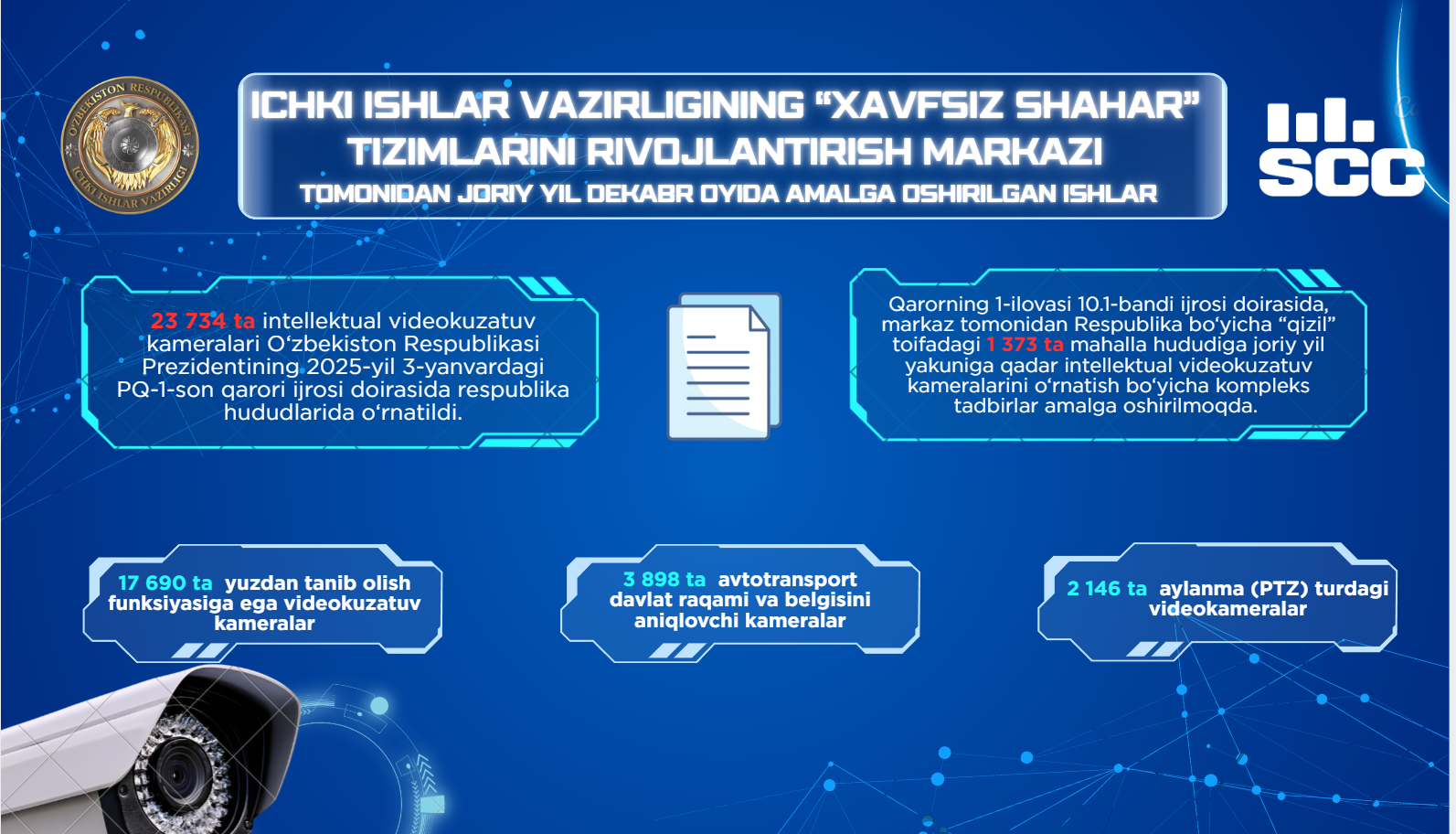 Ichki ishlar vazirligining “Xavfsiz shahar” tizimlarini rivojlantirish markazi tomonidan 2025 yilning dekabr oyida amalga oshirilgan ishlar