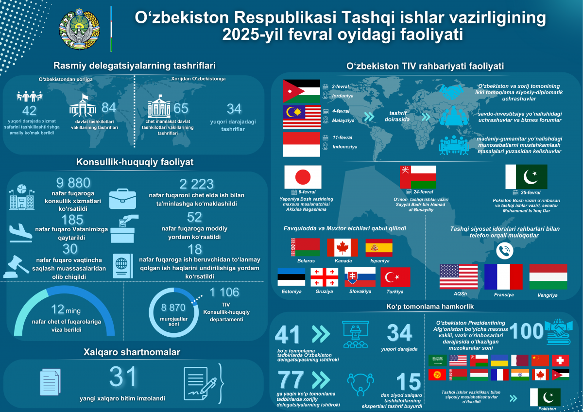 Tashqi ishlar vazirligining 2025-yil fevral oyidagi faoliyati to‘g‘risida