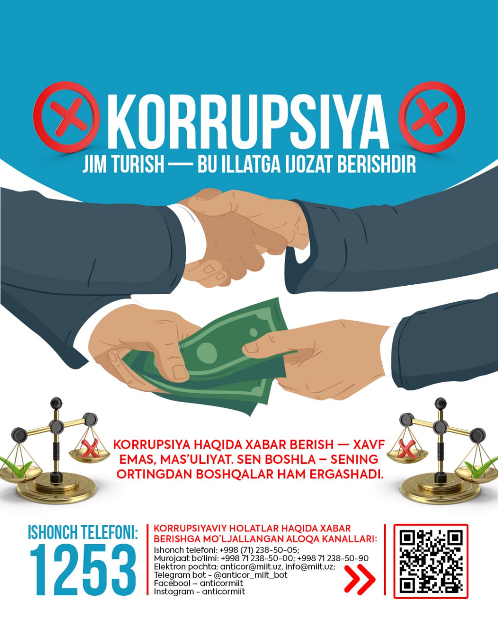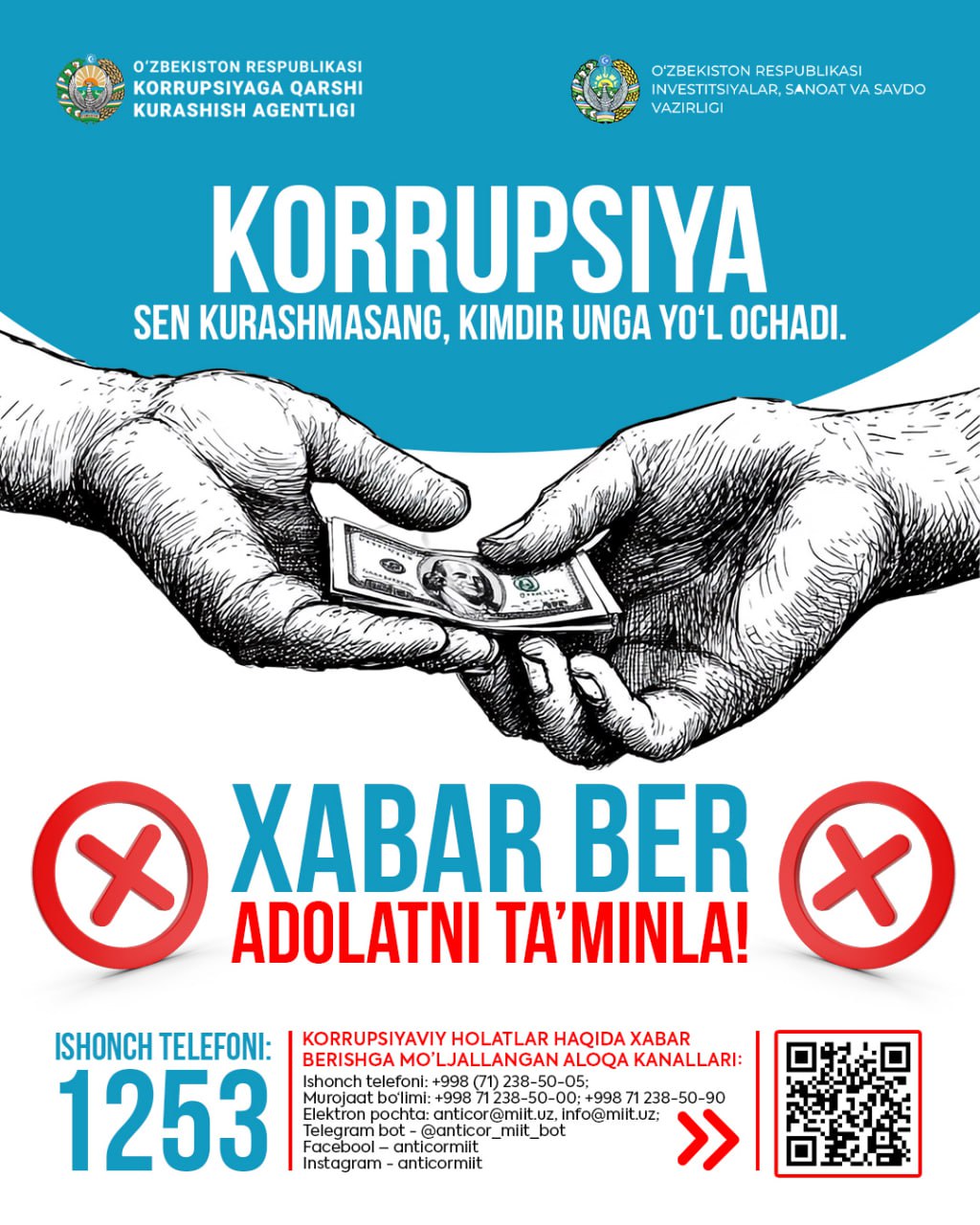 Korrupsiyaviy holatlar haqida xabar berishga moʻljallangan aloqa kanallari