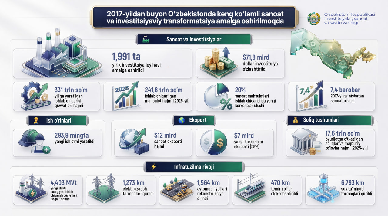 Investitsiyalar, sanoat va savdo vazirligining ko‘chmas mulklar to‘g‘risidagi ma'lumot