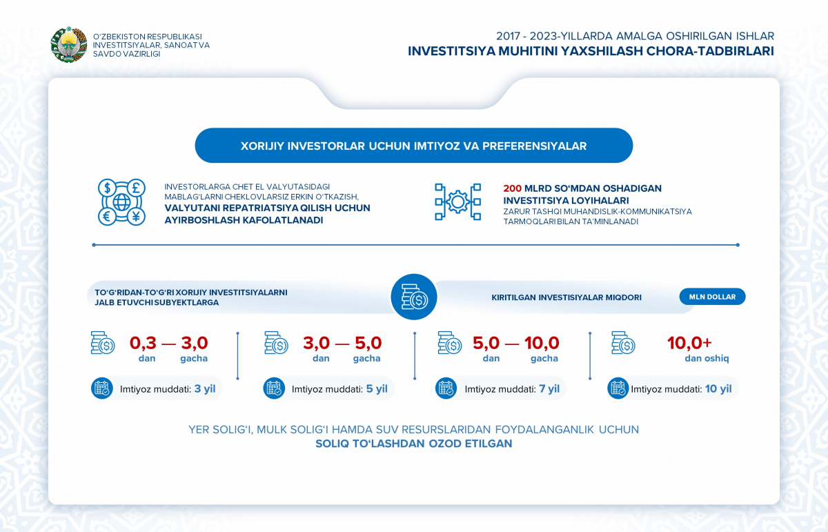 Mahalliy va xorijiy investorlarga beriladigan imtiyozlar reyestri
