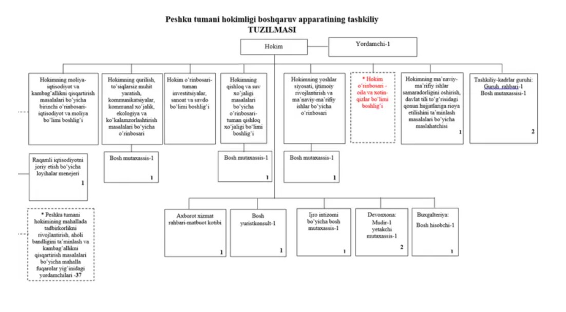 PESHKU TUMAN HOKIMLIGINING BOSHQARUV APPARATINING TASHKILIY TUZILMASI