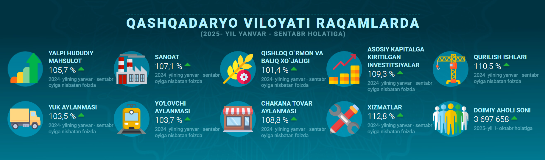 Qashqadaryo viloyatiga oid statistik ma'lumotlar bilan tanishish