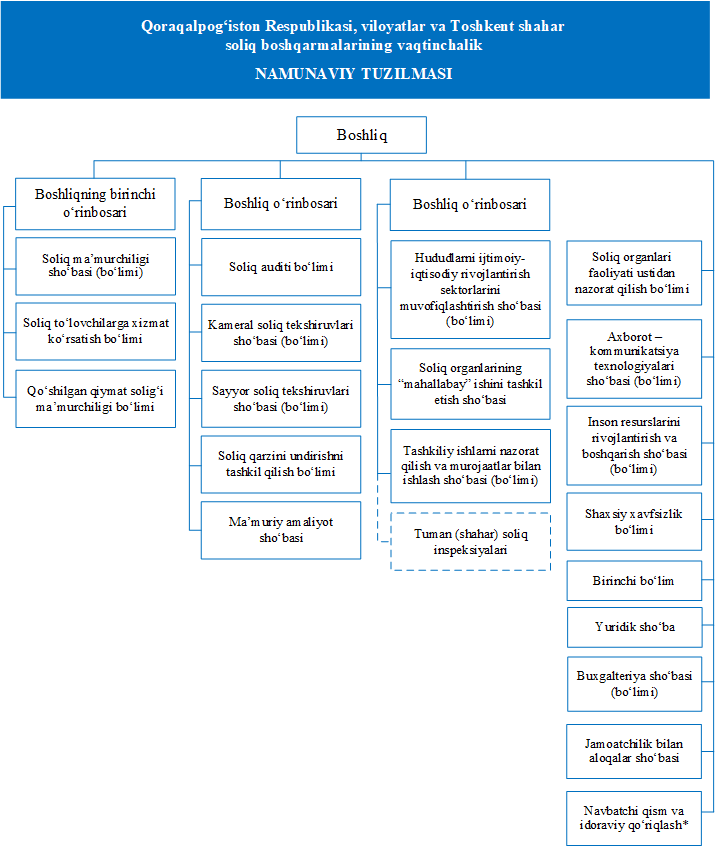 Qoraqalpog‘iston Respublikasi, viloyatlar va Toshkent shahar soliq boshqarmalarining tuzilmasi