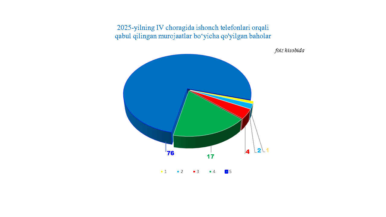 2025-yilda ishonch telefonlari orqali qabul qilingan murojaatlar bo‘yicha qo'yilgan baholar