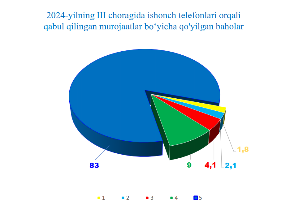 2024-yilning III choragida ishonch telefonlari orqali qabul qilingan murojaatlar bo‘yicha qo'yilgan baholar