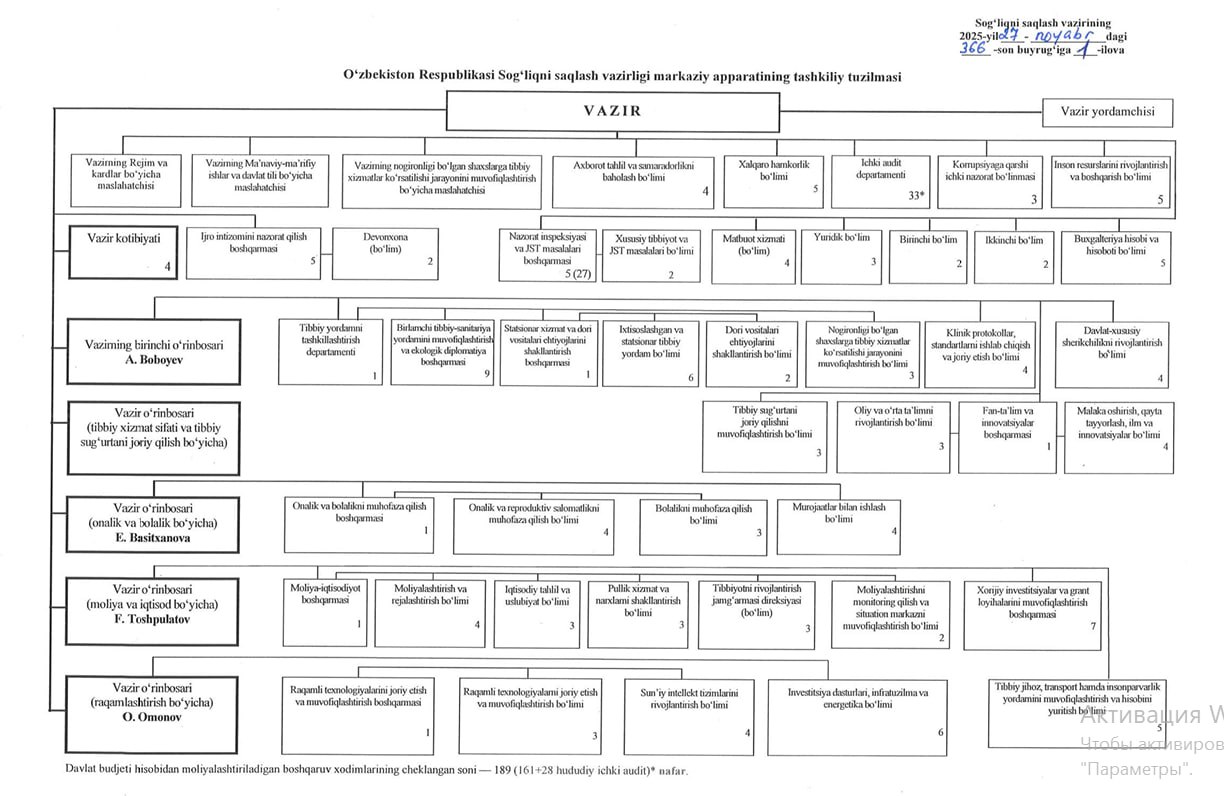 O'zbekiston Respublikasi Sog'liqni saqlash vazirligi tizimining