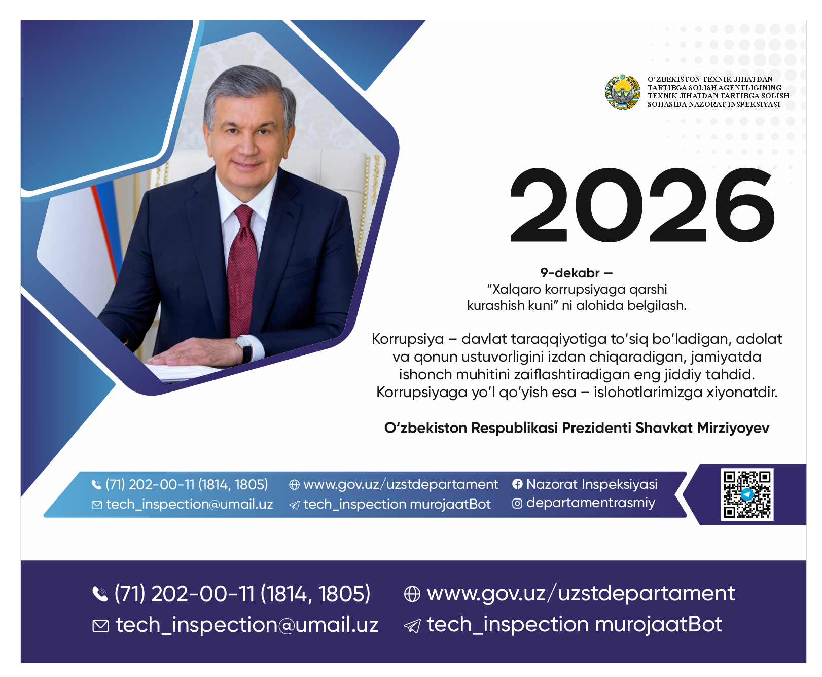 - O‘zbekiston texnik jihatdan tartibga solish agentligining 2026-yil manfaatlar to‘qnashuvi to‘g‘risida ma’lumot