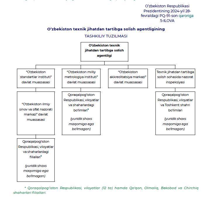 O‘zbekiston texnik jihatdan tartibga solish agentligining TASHKILIY TUZILMASI