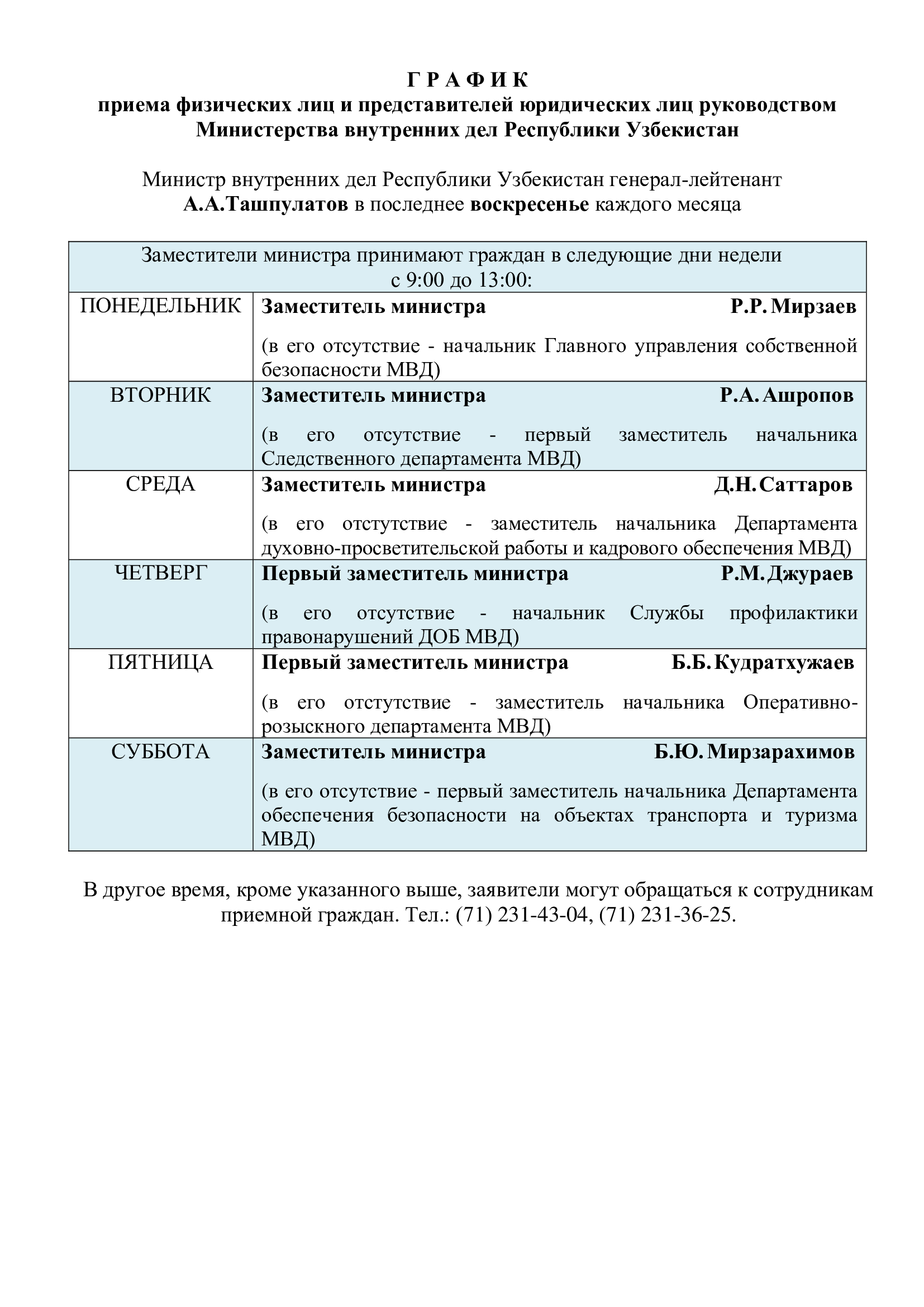 Зарегестрированные Министерством юстиции Республики Узбекистан нормативно-правовые акты, касающиеся деятельности органов внутренних дел