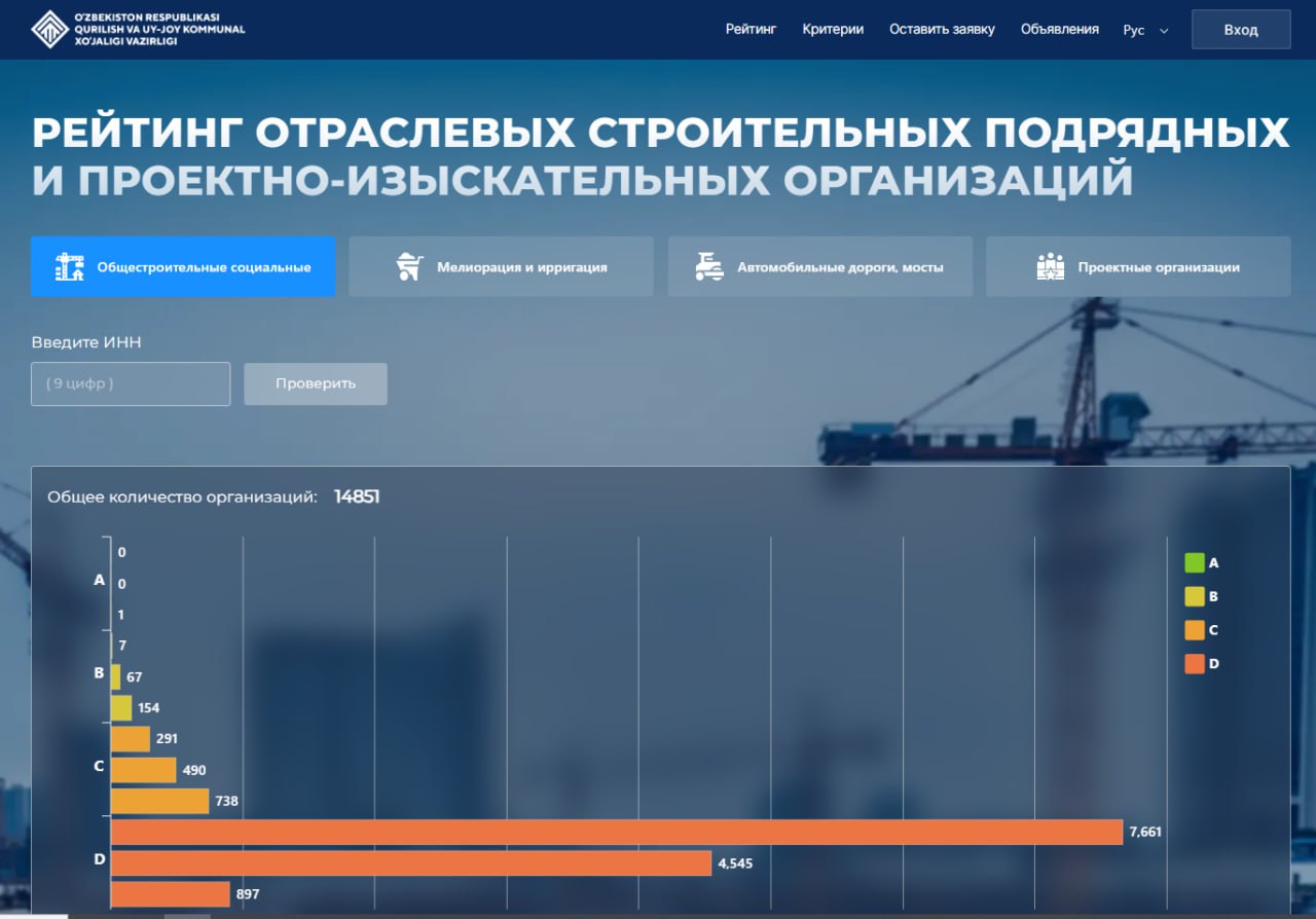 Как формируется рейтинг строительных и проектных организаций в системе «Shaffof qurilish»?