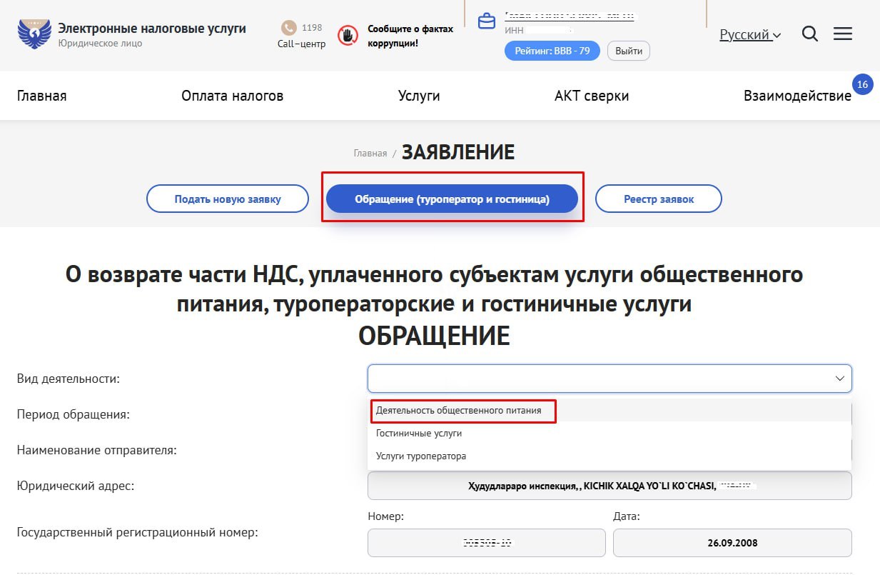 Для возврата НДС нужно подать заявление через персональный кабинет на my3.soliq.uz: