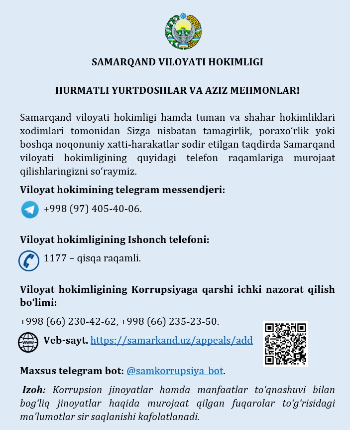 Самарқанд вилояти ҳокимлигининг норматив-ҳуқуқий ҳужжатлари