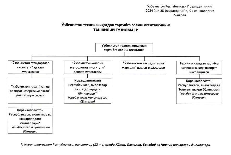 Ўзбекистон техник жиҳатдан тартибга солиш агентлигининг ТАШКИЛИЙ ТУЗИЛМАСИ